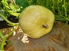 This is a photo of the backup fruit on my 150 sf plant. I had planned to cut it off but my main fruit is beginning to get a case of the dimples, even though it's still gaining 15# a day on average for the past 5 days. This fruit is on a secondary vine. I didn't plan it to be the backup fruit, but it might became a necessity. To prepare for the inevitability I put a piece of 1 in insulation board under it and repositioned it further from the retaining board in the bed.