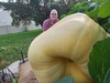 We've had two pumpkins on the vine for two weeks and a few days. Our primary pumpkin on the main vine, and 19 days since it was pollinated, is gaining weight at a rate of 15 pounds per day this week. We have a second pumpkin growing on a secondary vine that is close behind but several days younger, since it was pollinated more recently. The bigger pumpkin isn't looking very good, but continues to gain weight consistently. It's a good thing I kept the backup because I'm guessing the primary won't be around this time next week. I hope it proves me wrong, but it's dimpling and its progressing. My wife wants to keep growing it, or it would be culled. I'll know better next year (actually knew better this year but had no other fruit at the time). We culled two in the past 3 days that looked better as 3 or 4 DAP than this one did at the same age. This one is taping at 125 pounds.