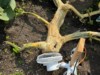 We had a harness break on our 4.42 Young tomato plant and the tomato dropped to the ground and the main vine broke. We were amazed it weighed in at 5.89 pounds with a circumference of only 25.25 inches. It was a very dense tomato and it would be great if the big one next to it had similar density. Bottom on next page.
