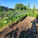 Second sweet potato planting starting their race up the poles. Verticle trellis set for watermelon. Spiral beets doing well.