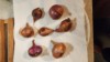 Started my own sweet potato slips with a nice bag of these Walmart specimens. I cut the tubers in half and lay them cut side down on prepped soil in a few small foil pans. These guys grow like crazy in the recent heat. Once they are about 2 to 4" tall or more, I cut them and place them in a clear glass container of water. In two days, I have roots! I plant the slips with these roots into Master Gardeners' potting soils with perlite. When the nights are above 60 here, I plant them outside. We are going to have some good sweeties. I just adopted some leeks from a Shafer Green House gardener, but all other plants were started from seeds. Love to companion plant. This year, these monsters are being tied up so they don't take up my walking paths.