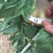 Back to work today but I am happy. It looks like all the pollen painting of the holiday weekend was successful. I believe my monster blossom is set. It is a bit over 1 inch long (more if it was straight) and completely fused. I have no idea how to determine the number of fused sections. I wish the foliage of the plant looked a bit healthier but will see how it grows. I did manage to clip a clone from this plant. If I lose this tomato it still may be possible to capture the genetics in seeds.
