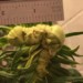 The flowers are starting to drop pollen in quantity. There are three open blossoms on this cluster. Collecting from all three to put into the mega. Sometimes it is difficult to expose the stigma without doing surgery. This blossom is one of those. It has a few small sepals that have grown over and are blocking the path to the stigma. Fixed with a small tweezers. This mega also consists a segment that is going to open a few days later than the rest. Looking at it's placement not promising. Very high chance it will not be fused.