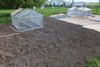 Here's the top patch with my 1865 on the left and Dad's 1696 kaminski on the right. Dad is using old carpet to keep the weeds down.