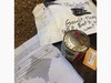 This fabulous lot of items could all be yours ice man for the 1317 Clementz. 1 11.5 oz can of arnie Palmer, a half used bottle of nasal spray, 7 mints, 1 QTip family Christmas card, 1 cran apple tea bag, 1 large can of dingy Moore stew, 1 pumpkin construction paper project hand made by my 4 year old, 1 tiny football, 1 used ticket stub for the San Diego zoo, a nail clipper, a blue ball point pen, and last but not least half of a Chapstick!!!!