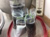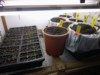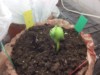 A poor start (the dirt is not sterile). Way up in the right hand the smallest seed germinates first!