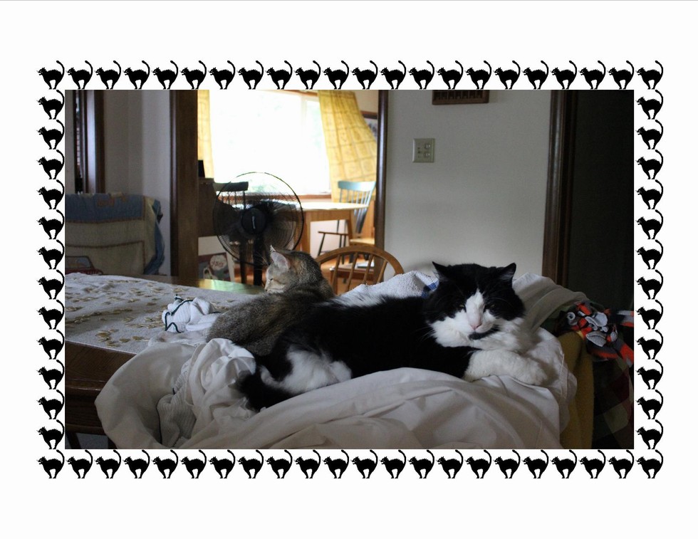 With all the rain, I washed and dried the pumpkin sheets and blankets. My kitties, Blackie Jackie and Smicken' always need to get in on any action and just couldn't wait to get there fur on this clean pile. I have been putting a warm blanket on any/most nights below 70F to help hold the heat into the pumpkin. It also helps keep the morning dew off the stems.