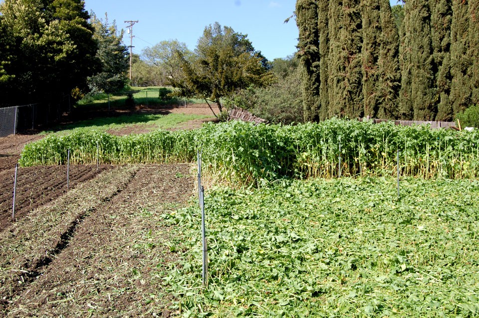 This is another view of the progress. Hacked down and then tilled in with a hand tiller. A lot of work, but it sure beats shoveling snow�.