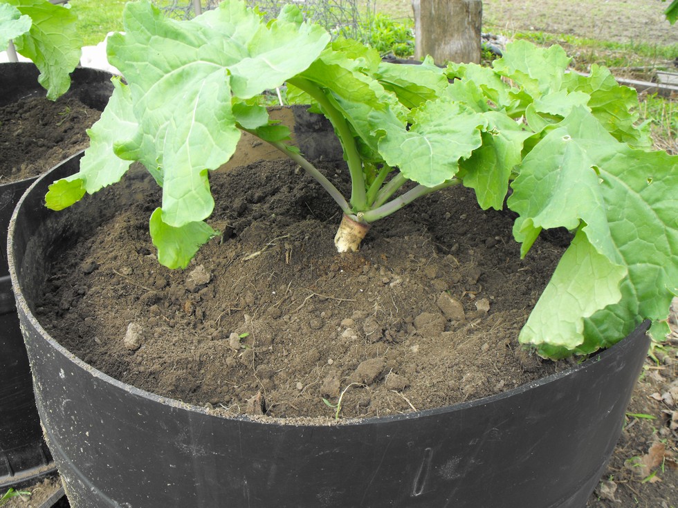 Another shot of one of the four Giant Rutabagas in the half barrels.