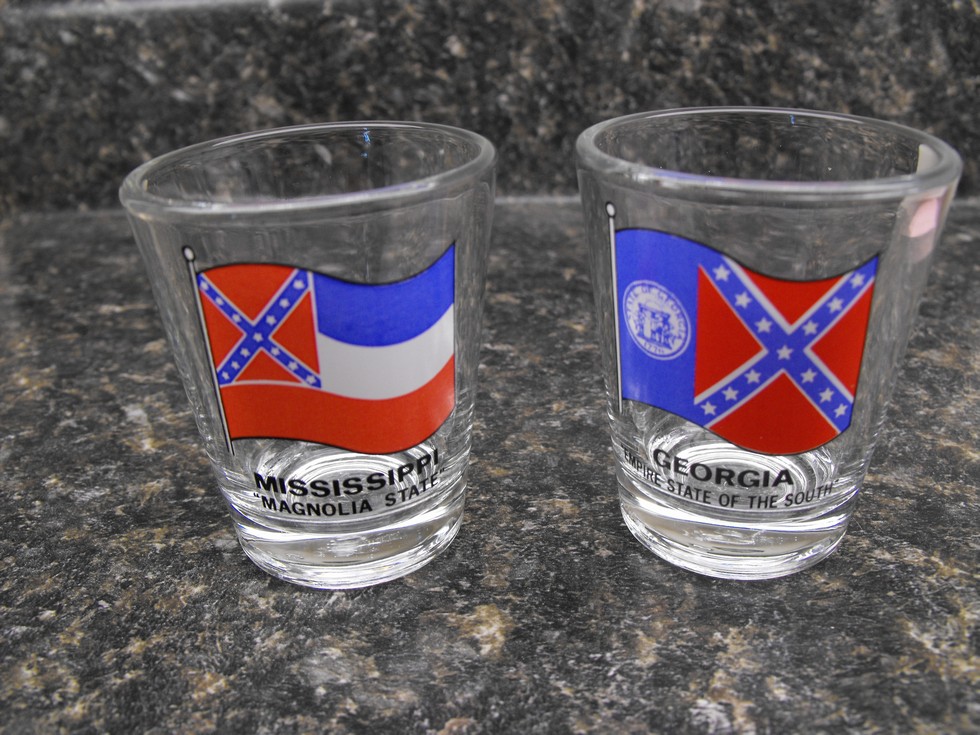 ebay just removed this lot of two shot glasses I had listed with 7 bids on them...they were deemed too offensive...Does this mean that all confederate states theirselves will be dug up and gottin rid of? There goes your property Value,lol. Where is it going to end? Back to growing for now.