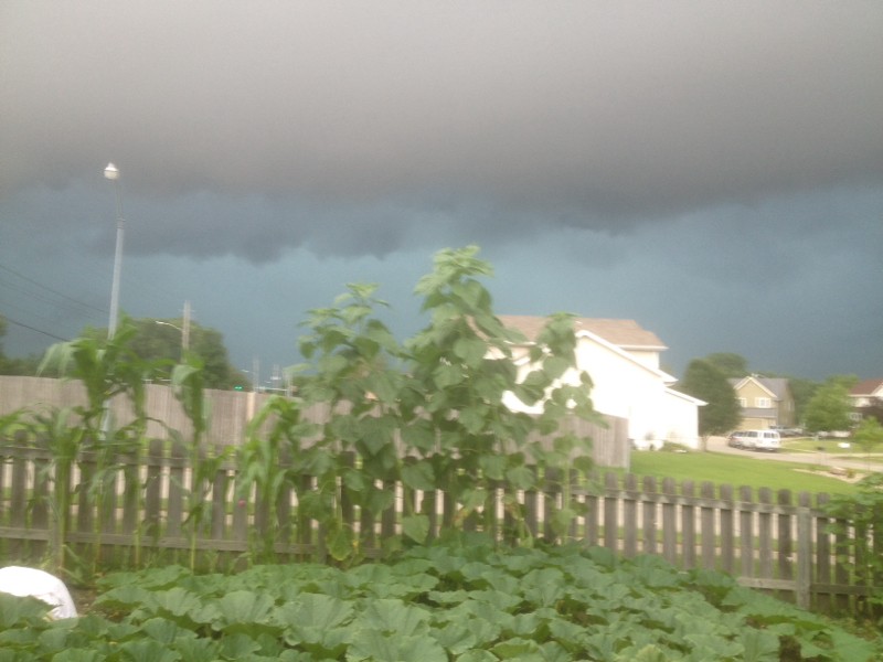 Giant sunflowers got knocked over by the wind with the severe thunderstorm that rolled her here today, dang it!