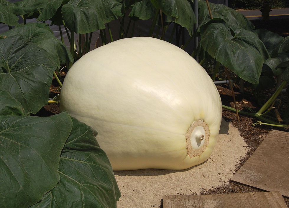 Baby Peach on the main vine hit 98� circ. on day 30. Her bubble butt is filling out giving her a longish low shape. Still mostly white and smooth with a hint of orange beginning to express. Now I�m bothered by the big bullseye on her ass.