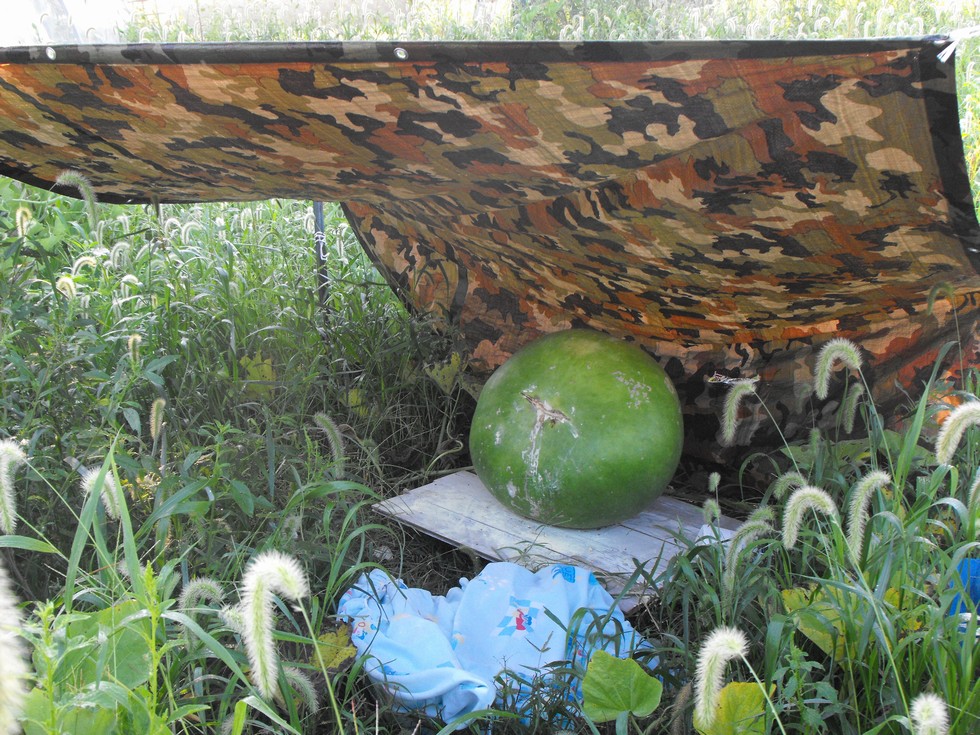 279.5 English Bushel Gourd is still growing strong, unbelievable. The split across the button is now 9" across and still only 1/2" deep but it is still very slowly seeping but again not rotting. One word to describe these this in my book, Tuff, Tuff, Tuff. Its measuring over 150 lbs a few days ago