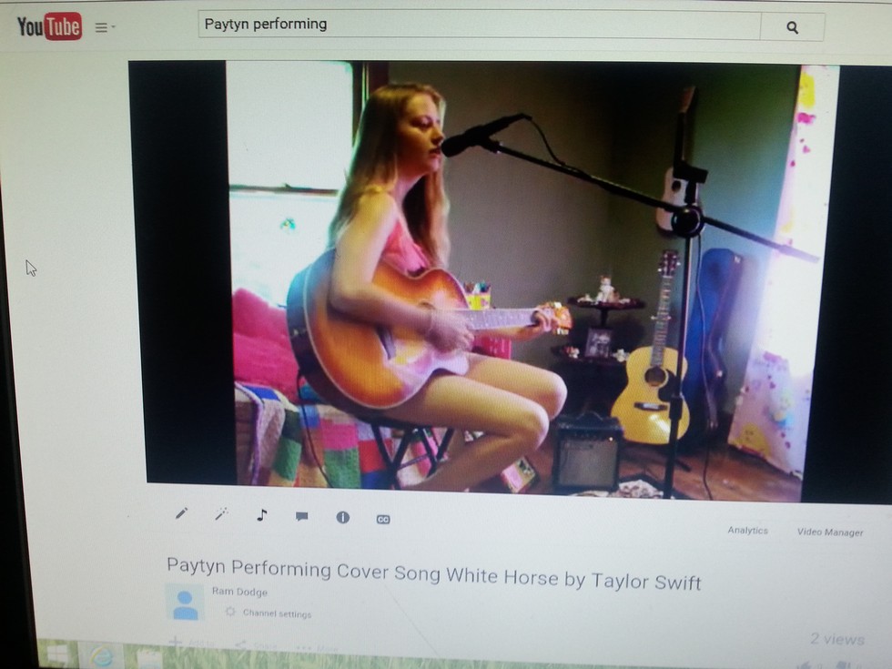My daughter on youtube. She is so talented and I am so proud of her. I recorder her just messin around with her new Ibanez electric acoustic guitar, she is just learning her chords and it is coming very easy to her. The sound is just through an open mic and not High Quality Input. I believe she is a natural. I have put her a little recording studio together in one of the spare rooms including a Korg D8, 8 Individual Track Digital recorder, a Tascam D4 Digital Recorder, a Behringer Q502 Sound Mixer and of course her Ibanez Amp. She can put it all thru an extra pc we have and compile the sounds she wants and burn it all to a cd, pretty cool. Thank God she knows how to do it all because I don't have a clue,lol.
