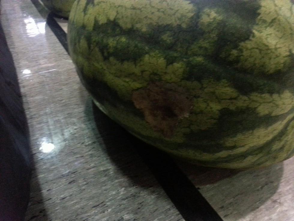 Another close up pic of the damaged Melon that was allowed. GPC Rules clearly state that all soft spots must be cleaned with a spoon and inspected to be further judged...it was never done. After being persuaded into bringing this issue up to the Site Director I got a chuckle on how afraid any of the other growers were to bring it up theirselves,lol. The site judge even announced in front of about 200 people or more that they new the melon was deeply damaged but after 4 of them had a talk it was allowed...amazing this can go on without basic GPC rules not followed but then again the site judge also announced in a nearly 10 minute speech that him and the grower had been friends for over 27 years,lol.