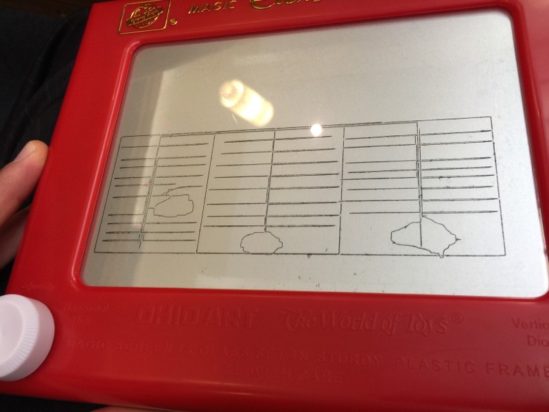 Bored at church playing with the kids etch a sketch, working on the patch layout