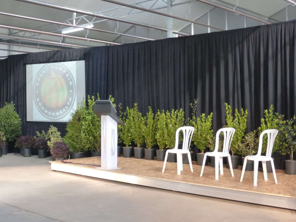 Friday at the Pinetops Nursery in Lymington, Hants, UK. The stage is set ready for a panel of experts.