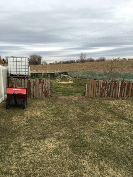 Even got to play in the patch a little today! Got my water tank lifted up to about 5 ft, added some more wind protection (the green snow fence) and built my first hoop house! 2 more hoops to build. It's amazing how much time I have put into this hobby already and haven't even planted a seed in the ground haha but I love it!