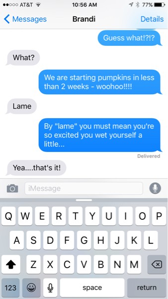 Text conversation between my wife and I. I will let you guys guess who is who. She is almost as excited as I am :)