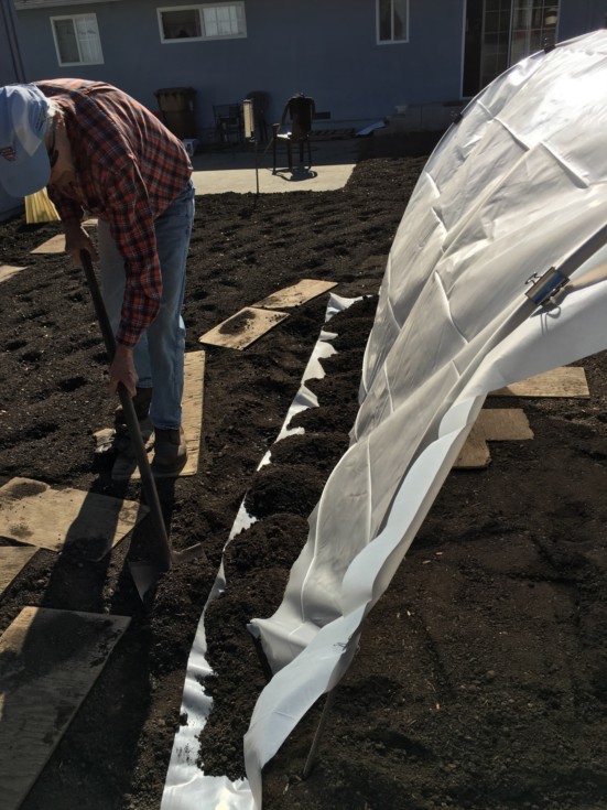 Slap a little dirt on the sides to keep the plastic from blowing off. We have a lot of wind protection so it would take quite a wind to do damage. We checked with a soil thermometer and the soil outside of the greenhouses was around 55 degrees. We will check the temp of the soil in the greenhouses in the next couple of days. It is going to be over 80 degrees here tomorrow. We will have to open the greenhouses so our soil doesn't get too hot!