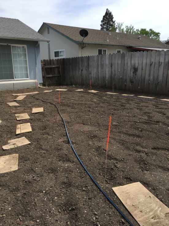 We layed out the black hose for the misting system and plotted where the misters will be. GOOD NEWS! Almost all the seeds have broken dirt!