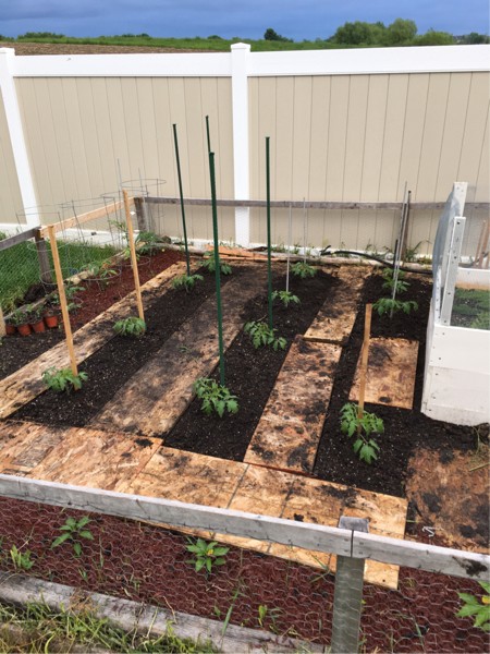 Finally got all the mater in - final total is 21 plants but 6 found their way to the edge of the pumpkin patch - I couldn't just throw them away :)