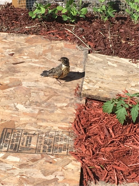 And look who was hanging out with the maters today.... It's the baby robin I saved off the window sill. Don't ask me how I know it's that one - I just know alright :)
