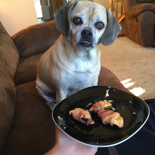 First jalape�os out of the garden - I have a special variety that come out stuffed with cheese and wrapped in bacon .....should I give her one ;)