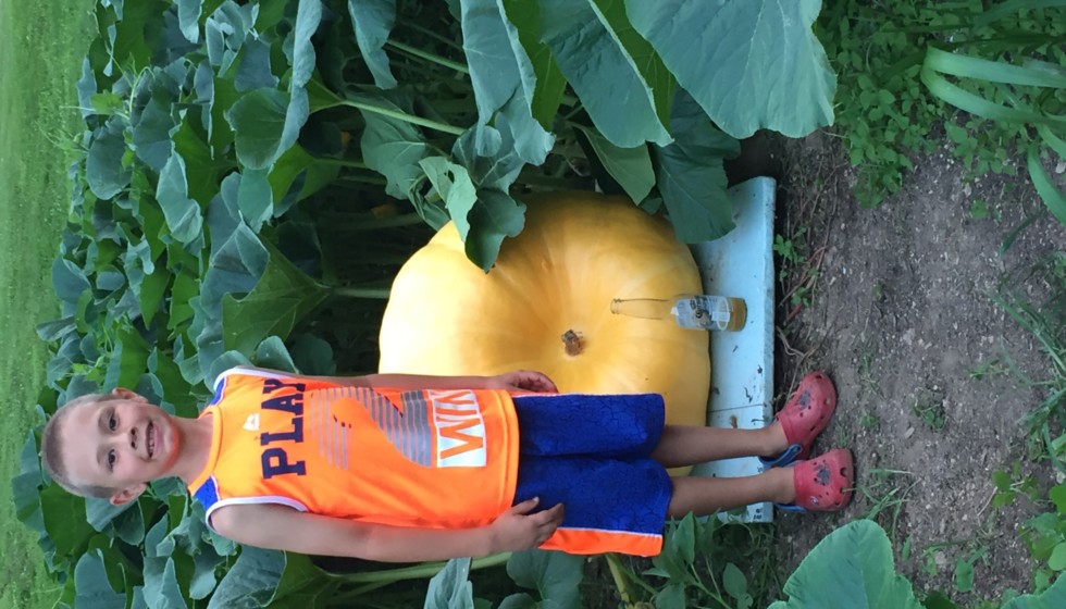 Son with his pumpkin.