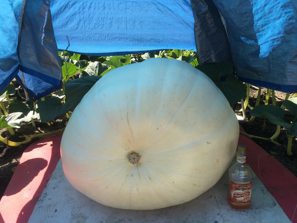 The 2145 McMullen day 38 est at 444 lbs. this is the plant that is about a half a plant. We took out about the first few feet of the main and the first few side vines on both sides due to rotten area on main. Amazing that she is growing at all!