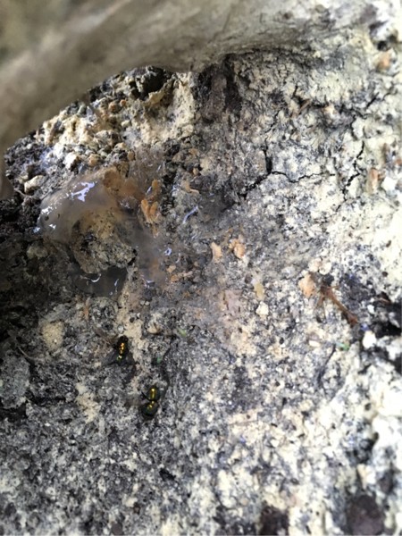 Here's a picture of the pumpkin jizz that came out of the stump over night - I thought a pervert was sneaking into the patch and rubbing one out on my stump at first but then I figured out its just leaking