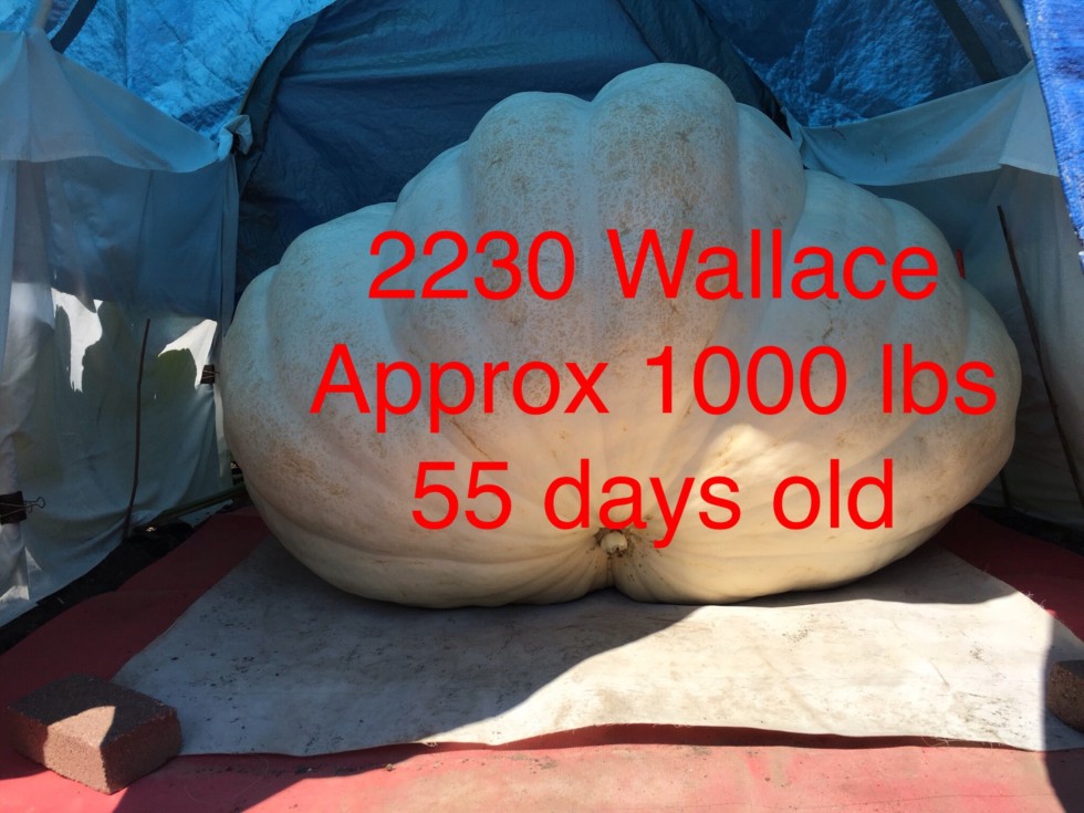 The 2230 Wallace. We have had to remove some vines and we removed the stump and a few side vines. This plant was huge so it still has a lot of plant. It REALLY COULD have been something if it had a whole healthy plant. The main vine is huge. Big leaves. And fusarium. Still growing 17 lbs a day.