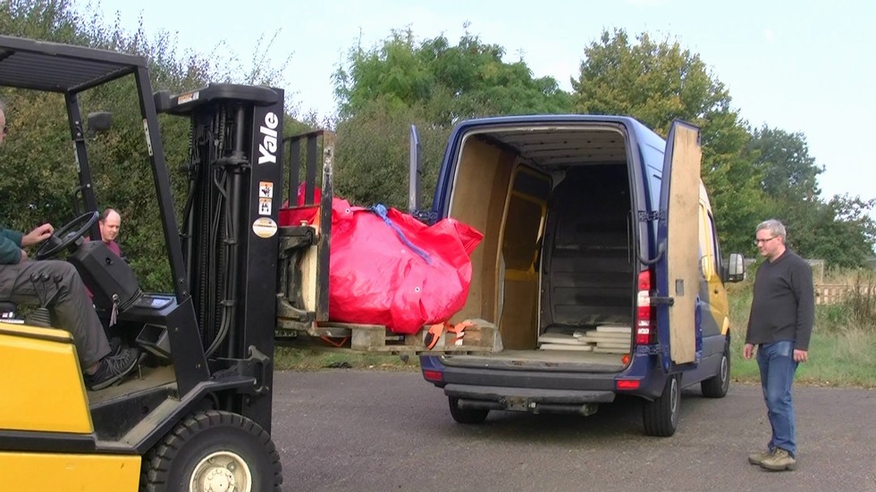 Loading her into a friend's van using the allotment shop's fork lift.