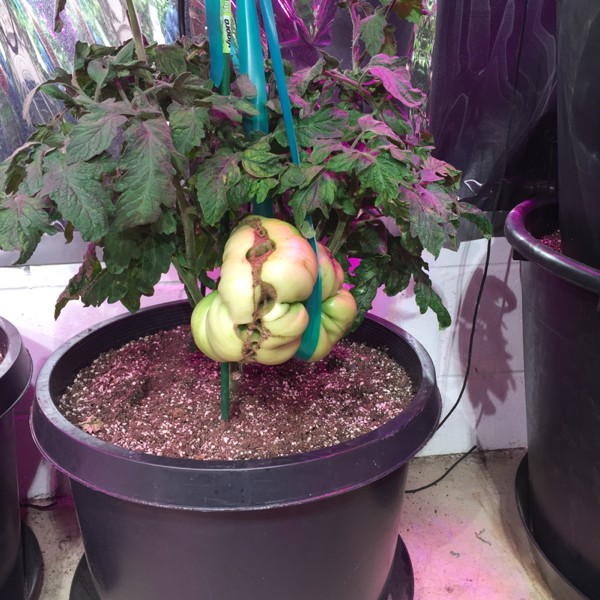 This is my best in soil right now. In a 15 gallon pot under a 300 watt LED. It is measuring 19.5 inches 35 DAP...can I break the 3 lb indoor level? I am very happy. Last winter was my first try at indoor tomatoes..grew a 8.05 oz (.50 lb)slammer. I might have learned a little in the past year. Hoping to improve even more for next year.