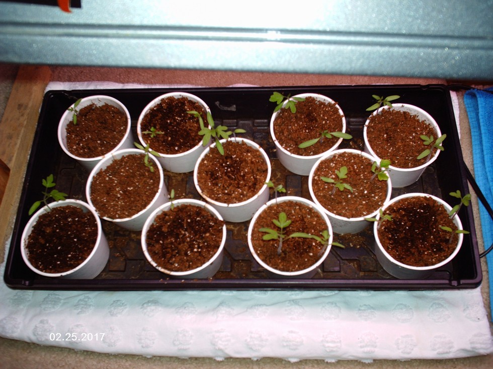Bush Beef determinant seedlings are progressing well! These will need further transplant and a deeper position in the new pot to establish a decent root system along the stem. Even watering is essential and something I need to pay more attention too. Right now, the temperature outdoors is 25 F, but feels like 18 F. We have had a major weather change from very warm weather to very cold. Thank goodness for an indoor greenhouse, heat mats and grow lights!