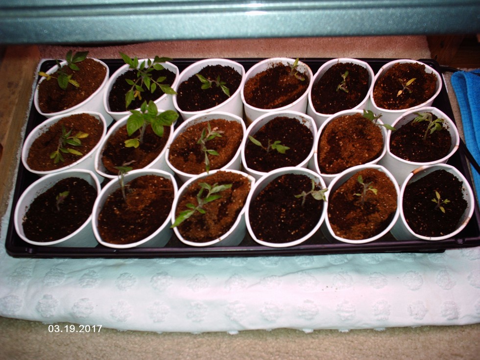 Bush Beef determinant seedlings are slowly progressing and the yellowing seemed to ease up a bit.