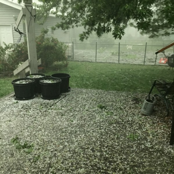Watching, from my kitchen as my season goes to hail. I see some pieces up to about an inch in diameter. Will know the extent of damage soon after it stops.