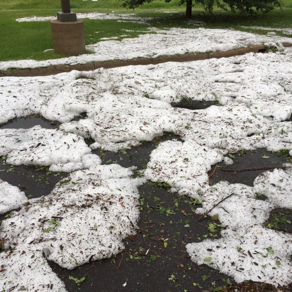 I guess I was unlucky. Drove to the community garden that is only a mile from my house. Only damage is a few small holes in the leaves. Unfortunately, the plant that is there was my weakest one. On the way home stopped by a store 3 blocks from my house. This is what their parking lot looked like 1 1/2 hours after the storm...is it June?