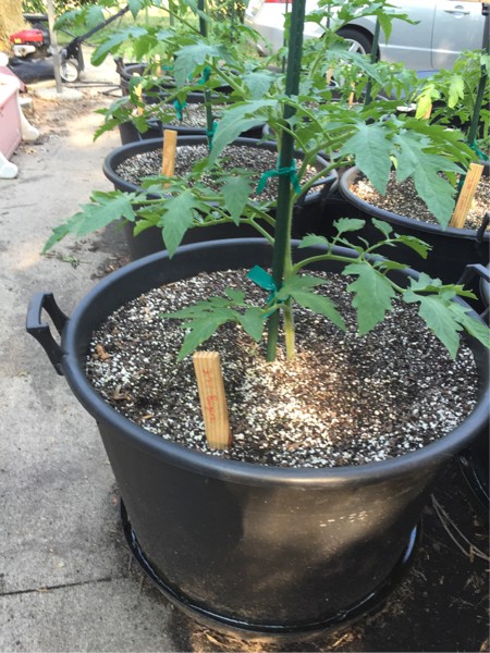 My tomato plants growing in winter 40 gallon soil pots are taller with stretched out nodal lengths compared to the garden plants. In the front is from my 3.77 Wixom Slammer personal best. It has a nice mega on it and new growth has been terminated even though the blossom has not even opened yet. Behind it is a 6.23 Konieczny. So far this plant has thrown only single blossom, single stem. It has 3 weeks left to throw a big one. Behind that is the ribboning 8.61 Sutherland. I think I will mess up the pruning on this one. When you have a 7 fused vine with a mega in the middle..how do you trim? I am curious how these plants do. How big of a container is needed to be equal grow environment to garden plants. I say the number right now is between 25 gallons and 1000 gallons.