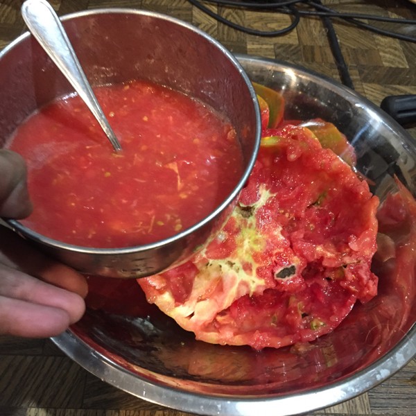 Quite a pile of tomato mush out of this one. I use a fork to puree any big chunks down to size.