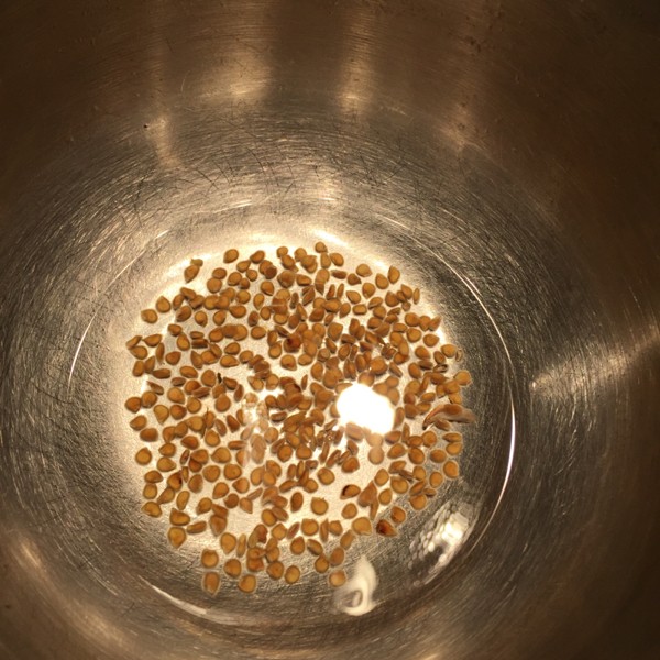 After a few rinses to remove the floating material, it is nearly pure seeds that are left.