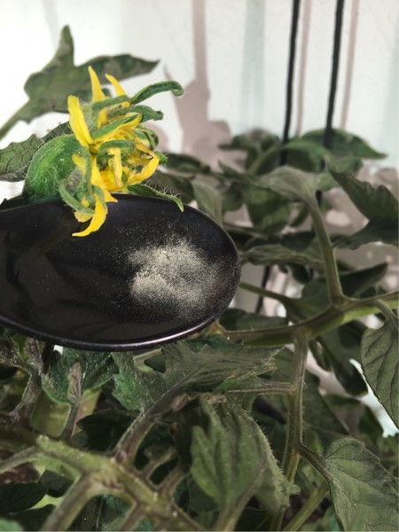 The flowers are starting to drop pollen in quantity. There are three open blossoms on this cluster. Collecting from all three to put into the mega. Sometimes it is difficult to expose the stigma without doing surgery. This blossom is one of those. It has a few small sepals that have grown over and are blocking the path to the stigma. Fixed with a small tweezers. This mega also consists a segment that is going to open a few days later than the rest. Looking at it's placement not promising. Very high chance it will not be fused.