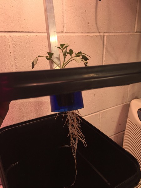 The solo aero lid (rev A) is done. It has a two inch net pot centered in the bucket. I glued a plastic bottle that is cut to hang just below the level of the net pot. Hoping this will stop the rock wool from receiving a direct shot of mist. I am trying eliminate over saturation points. I also installed the base for my home made modular plant support stake. Indoors there is a problem with using 4 and 5 foot stakes. They interfere with the height of the light above canopy. I am going to use square aluminum tubing that I can connect together as the plant grows. I might have to relocate the growing supplies that are being stored on my bridgeport mill out in the garage (it makes a really convenient shelf). I can then utilize it to fabricate more pieces for the the modular plant support. While i am at it, I should clean off the the lathe too.If the china bulkhead fittings don't arrive by christmas I will make my own.