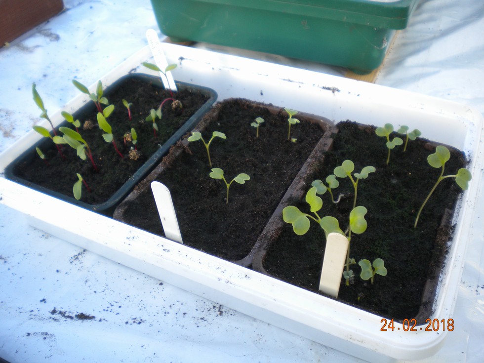 Giant Beetroot & Swede removed from propagator onto heated side bench in greenhouse, may be too early, depends on the weather.