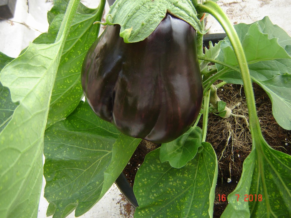 Aubergine plants liking the sun/heat, left one fruit on to see what develops, too early for the late sept. show