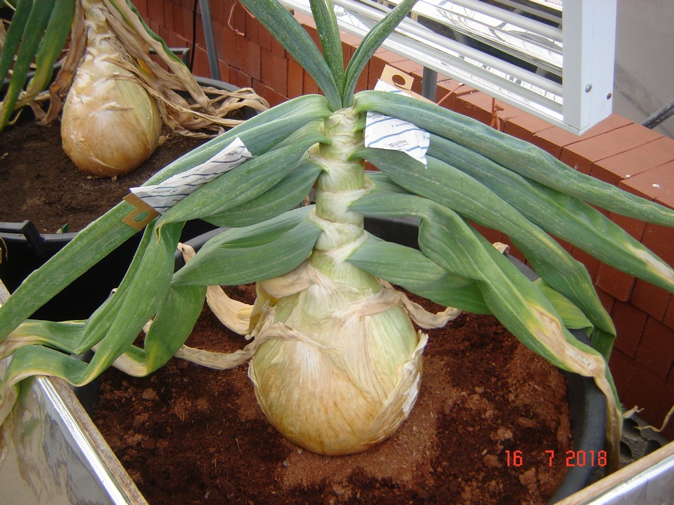 This onion is in Coir growing medium and generally these have greener tops, even if not the largest bulbs.