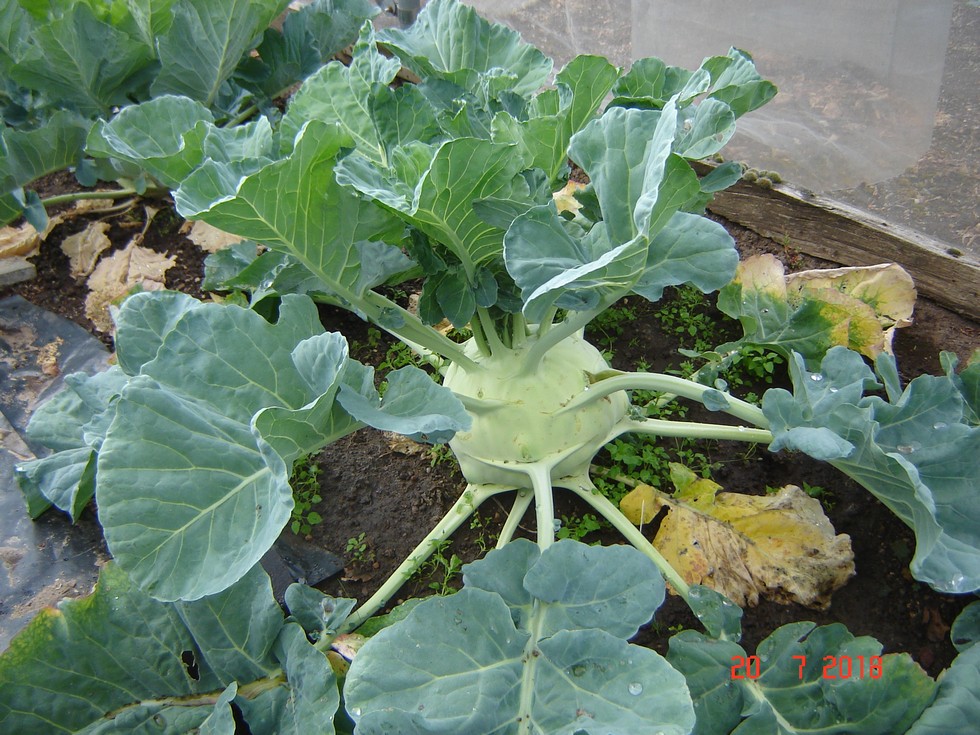 Kohl Rabi growing well at 19 inches circ. having to water every evening as 7 weeks now since any useful rain and 30c temps.
