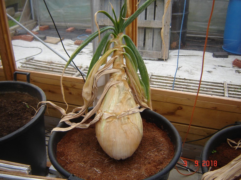 Coir grown Onion finally suffering from the heat and green leaves dying back fast.