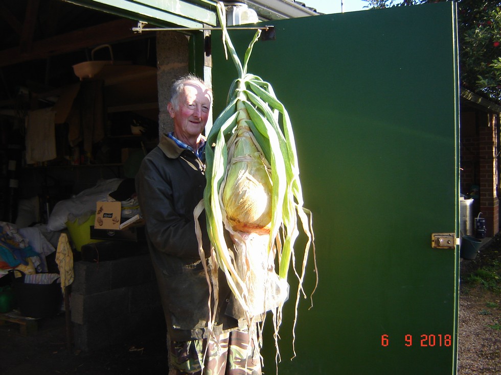 Lifted an Onion for Blyth show, 16lb 15oz 'as grown'. Pleased with this win against strong competition. It has a strong green top and I was able to retain a mass of root when lifting from Canna Coir growing medium.