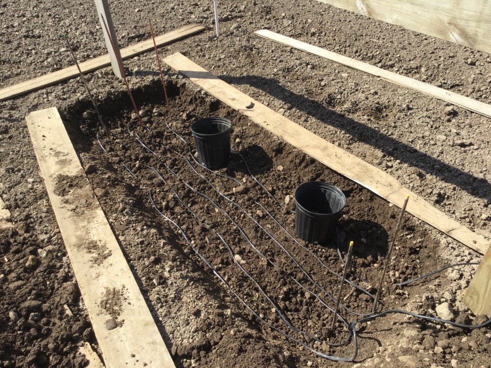 Trying heating cables this year on three out of six plants, I�m going with 60 feet long ones. I dug half the hole and installed the cable on one side and after I took picture I did the other side.